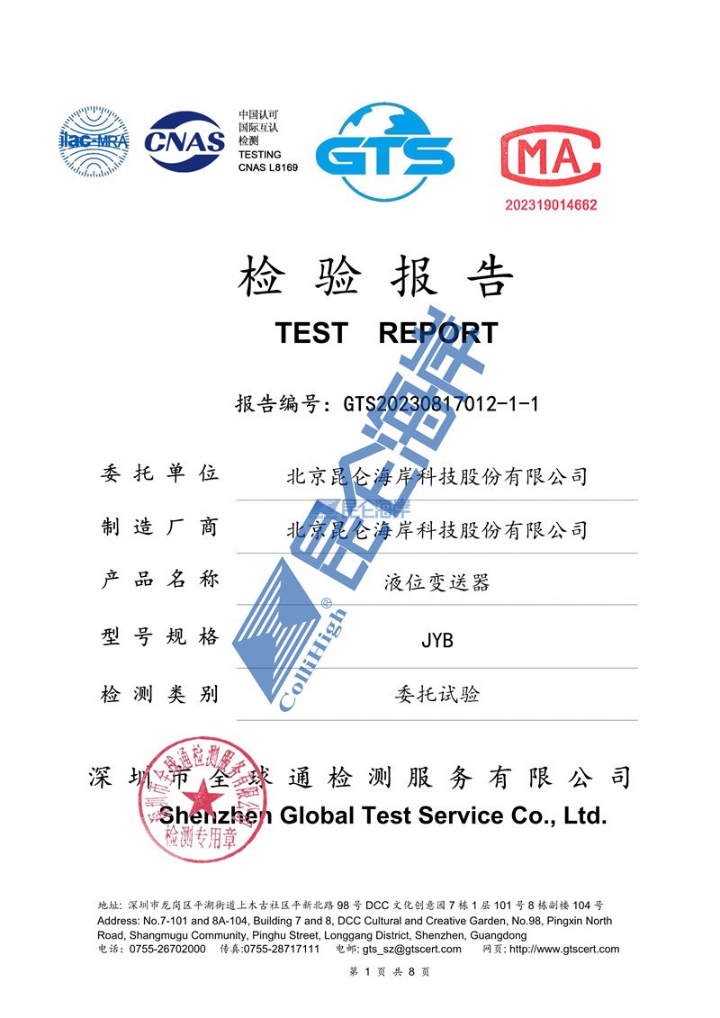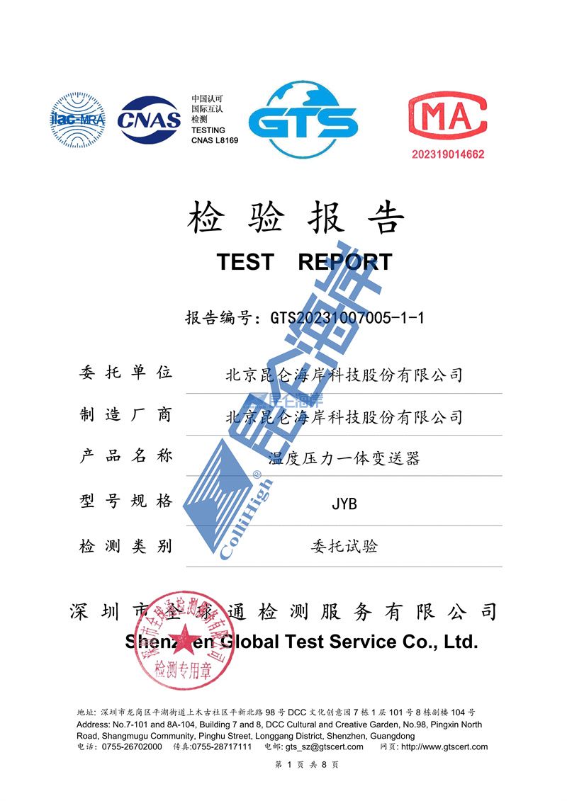 JYB温度压力一体变送器防护等级IP68检验报告01