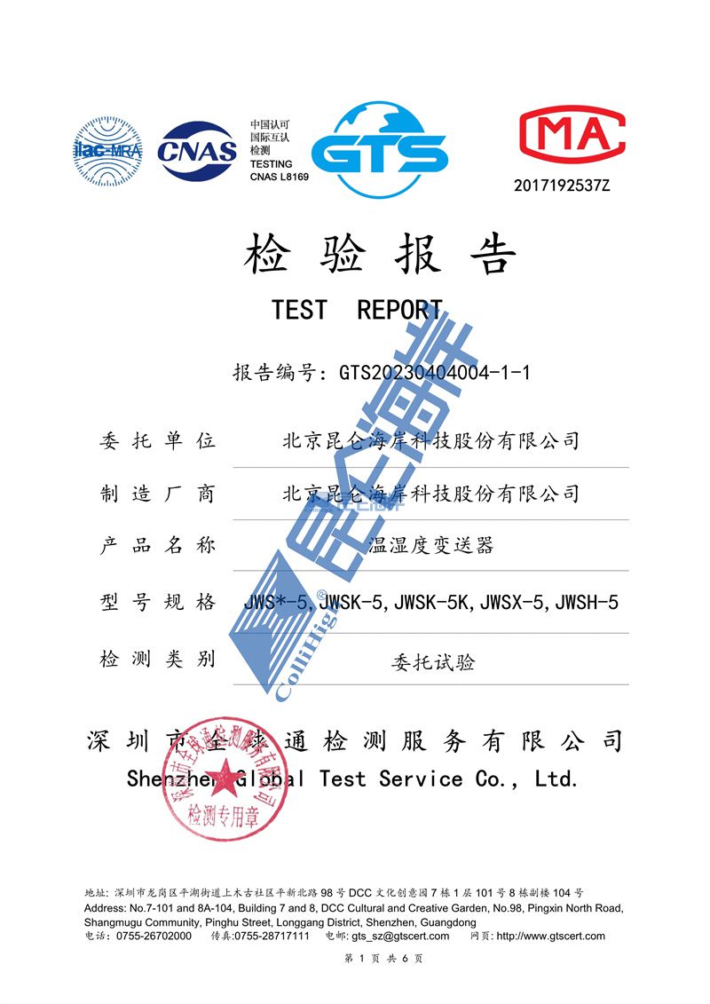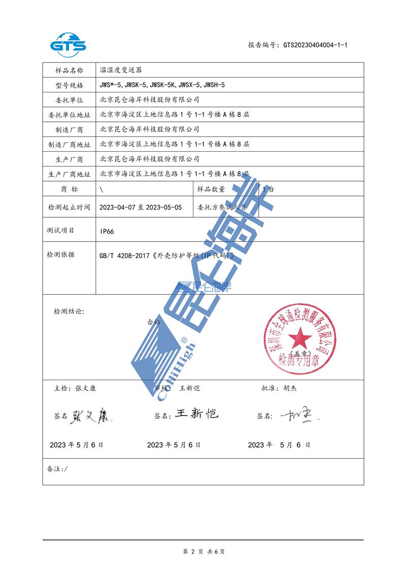 JWSK-6 温湿度变送器 IP65防护等级检测报告2