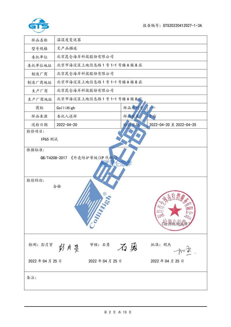 JWSK-16 温湿度变送器 IP65防护等级检测报告-2