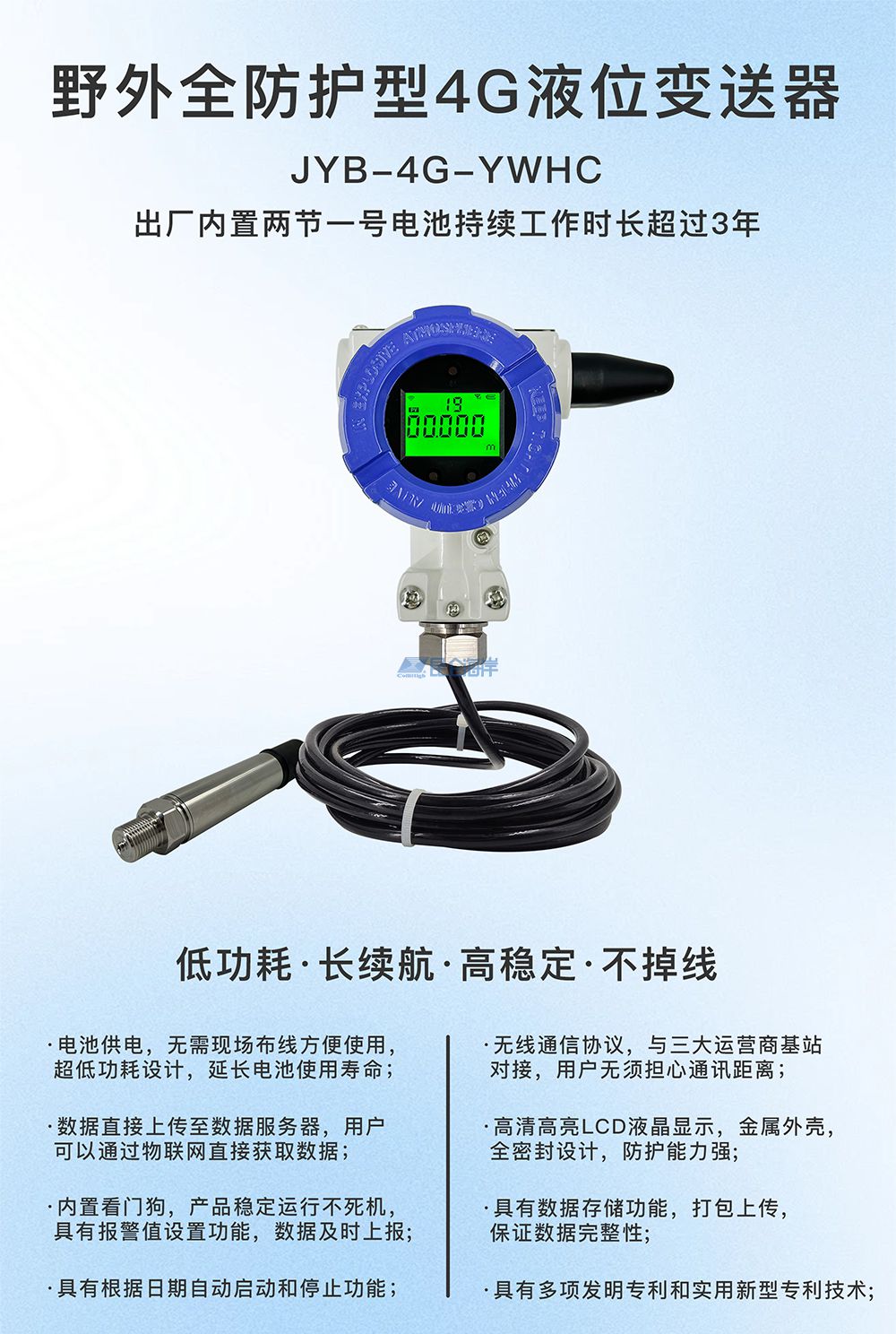 JYB-4G-KO无线野外全防护型压力液位传感器(LCD显示)使用说明书V1.0
