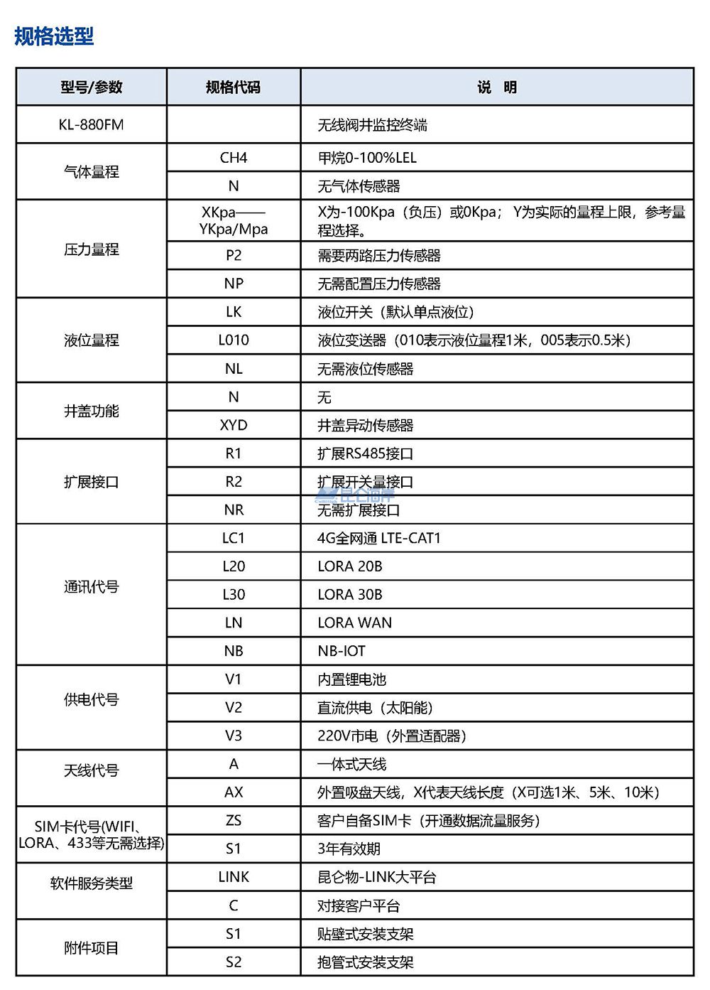 KL-880FM是一款由高能锂电池供电,应用检测现场的易燃易爆气体浓度、压力、流量、液位、环境温度、井盖/门的开关状态等数据的智能监测终端;通过无线方式远程上传到管理中心,并可实现远程控制;设备采用内置电池供电方式,适用于地下井、地下管廊、无人区、公共安全区或特殊作业环境的综合数据检测和实时监控。