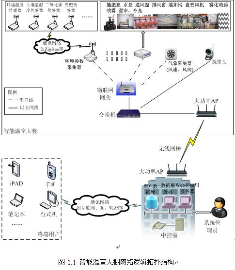 智能温室大棚网络逻辑拓扑结构如图1.1所示。