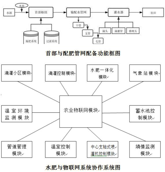其首部枢纽系统主要包括水泵、过滤器、压力和流量监测设备、压力保护装置、施肥设备(水肥一体机)和自动化控制设备。首部枢纽担负着整个系统的驱动、检控和调控任务,是全系统的控制调度中心。