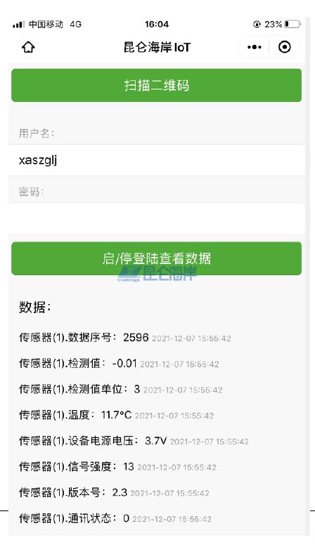 (2)进入扫码看数据页面,扫描壳体标签上的二维码。扫码后的数据展示。