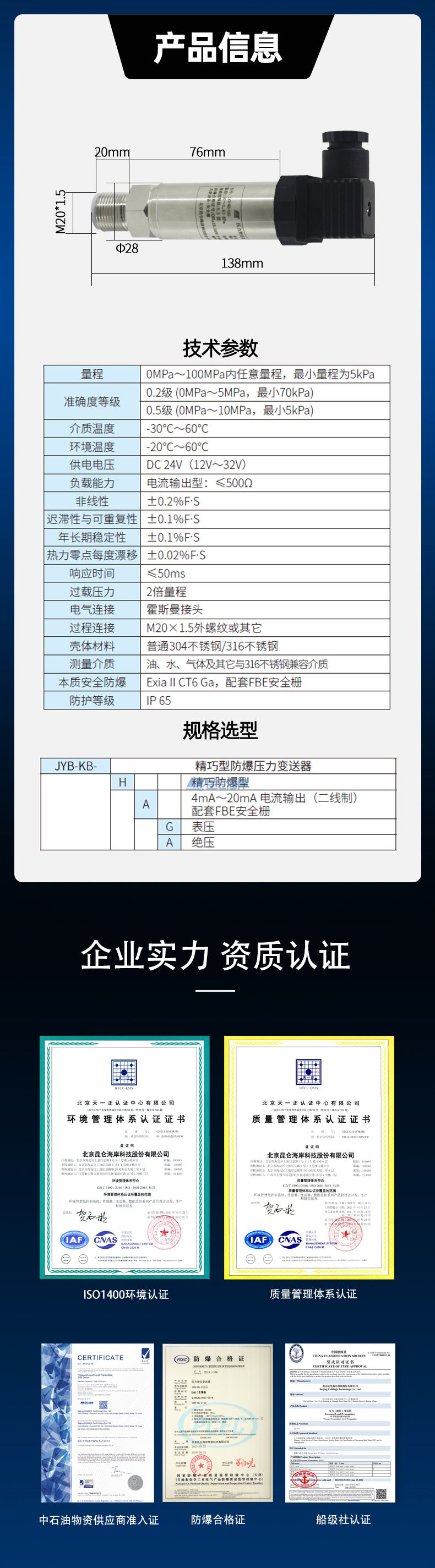 JYB-KB-H Series Exquisite Explosion-proof Pressure Transmitter Instruction Manual V1.3