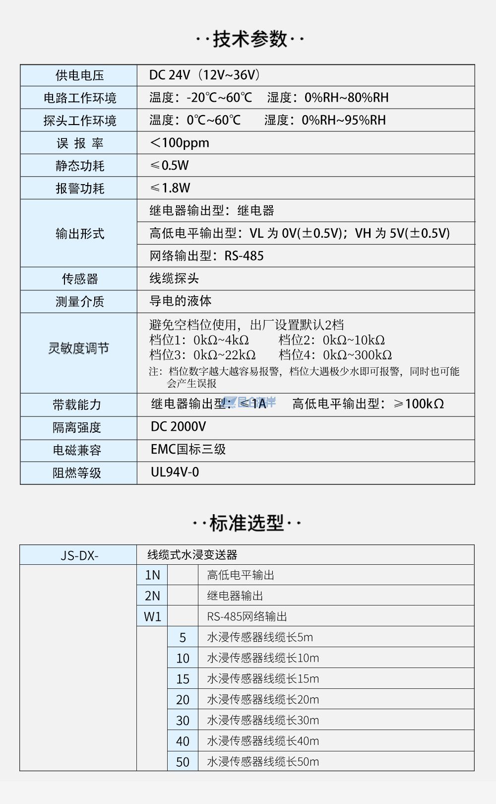 资源下载:JS-DX-N 线缆式水浸变送器使用说明书V2.3