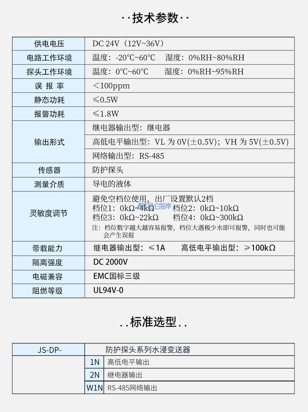 资源下载:JS-DP-N防护探头水浸变送器使用说明书V2.3