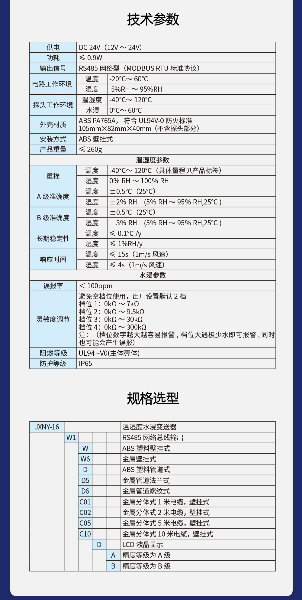 JXNY-16W1系列温湿度水浸变送器通讯协议 V1.0