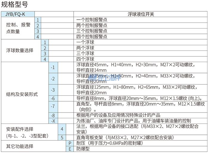 3、要明确浮球不在开关点位置时,输出是常开还是常闭。(不说明一般为常开)
