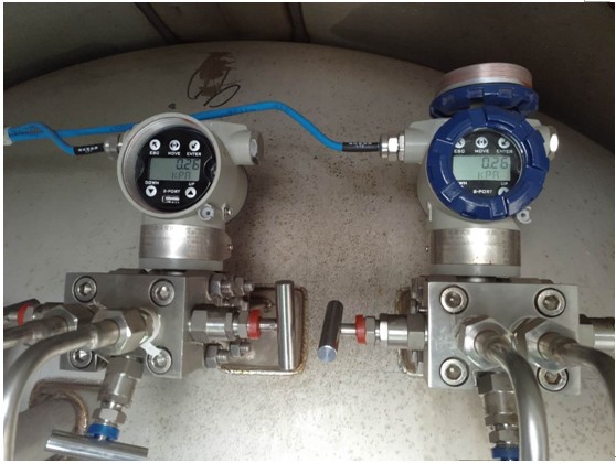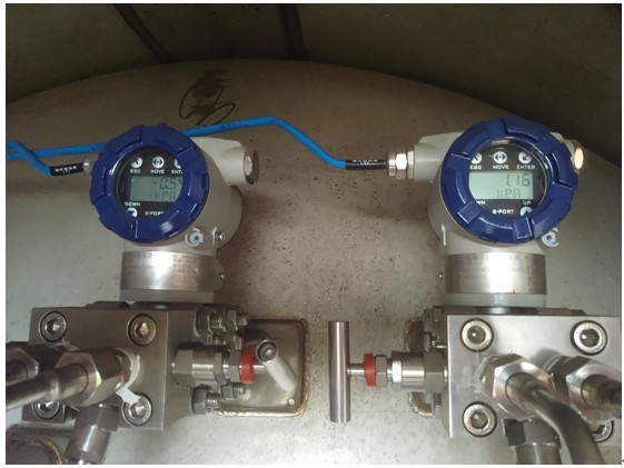 客户反馈,两个同一管路的差压变送器,一个正常显示,另一个居然显示为负压;找我们公司求解;同时反馈出现场照片如下: