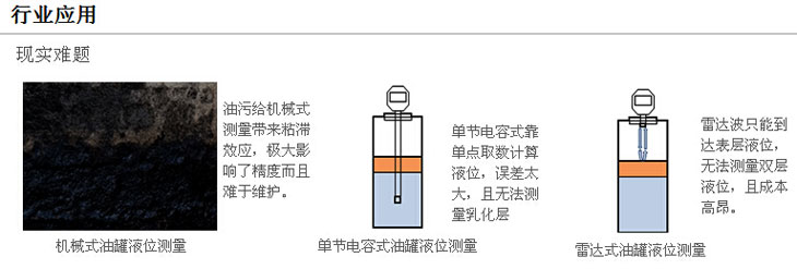 可同时输出罐内油和水双液位数据稳定的输出罐内油和水双界面的液位数据,同时显示出来;也可以接入组态或者PLC进行后续控制。非常适合用在没有集输系统的油矿井场、联合站混合液抽取排放液层监控,运行稳定可靠,精度衰减周期长,长期使用维护成本低廉。 是终端用户老系统升级改造以及新井场构建的标准配置选项。全新的密封设计原装封口保证介质完全不会进入探头内部导致损坏,事实上,市面上其他同类因为密封问题导致探头损坏的几率非常高。