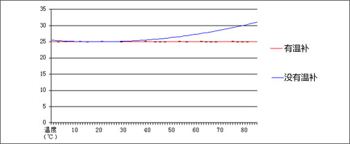 右侧是我们实验室模拟环境的实测数据,看图可知,无温补的情况下,随着温度与常温偏离的越多,输出的数据漂移越大;在有温补的情况下,温度从0℃到85℃之间,输出始终保持稳定,不会因为介质温度变化影响数据输出。