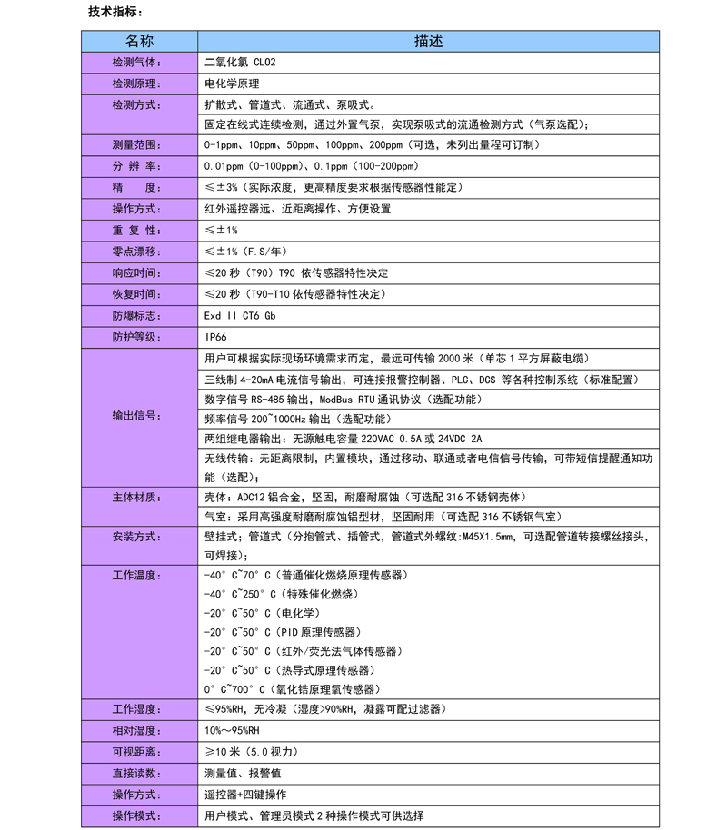 二氧化氯CLO2固定式气体检测仪是8868登陆入口全新打造的一款气体检测仪,采用原装进口传感器及全新32位低功耗处理器; 仪表盘显示界面,数值与进度条同时显示,美观大方;电路采用4层布线,对弱信号及抗干扰更强;独立的高精度进口16位AD芯片及特有信号处理算法,测量数据精度更高更稳定;4~20mA、RS485、200~1000HZ多种输出信号可选择, 方便接入各种报警控制器、PLC、DCS等控制系统;防爆结构设计可应用在各种危险的工业场所。