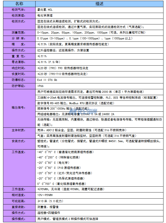 氯化氢HCL固定式气体检测仪是8868登陆入口全新打造的一款气体检测仪,采用原装进口传感器及全新32位低功耗处理器; 仪表盘显示界面,数值与进度条同时显示,美观大方;电路采用4层布线,对弱信号及抗干扰更强;独立的高精度进口16位AD芯片及特有信号处理算法,测量数据精度更高更稳定;4~20mA、RS485、200~1000HZ多种输出信号可选择, 方便接入各种报警控制器、PLC、DCS等控制系统;防爆结构设计可应用在各种危险的工业场所。