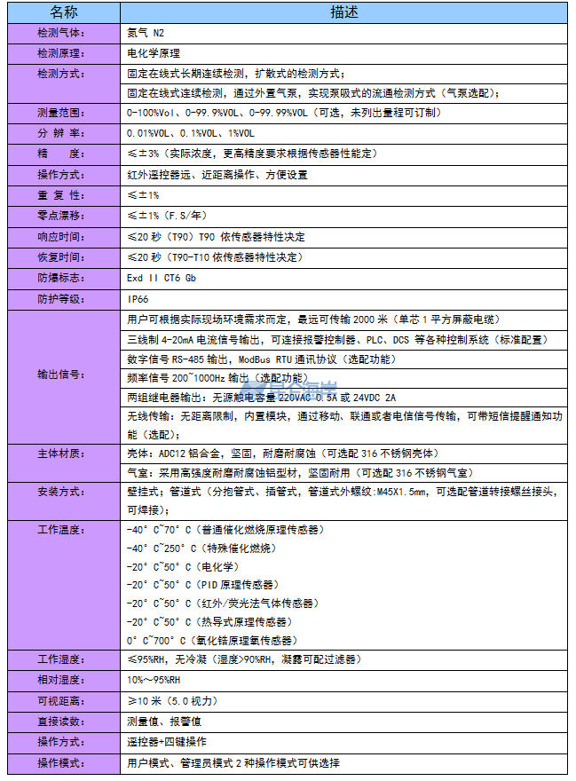 氮气N2固定式气体检测仪是8868登陆入口全新打造的一款气体检测仪,采用原装进口传感器及全新32位低功耗处理器; 仪表盘显示界面,数值与进度条同时显示,美观大方;电路采用4层布线,对弱信号及抗干扰更强;独立的高精度进口16位AD芯片及特有信号处理算法,测量数据精度更高更稳定;4~20mA、RS485、200~1000HZ多种输出信号可选择, 方便接入各种报警控制器、PLC、DCS等控制系统;防爆结构设计可应用在各种危险的工业场所。