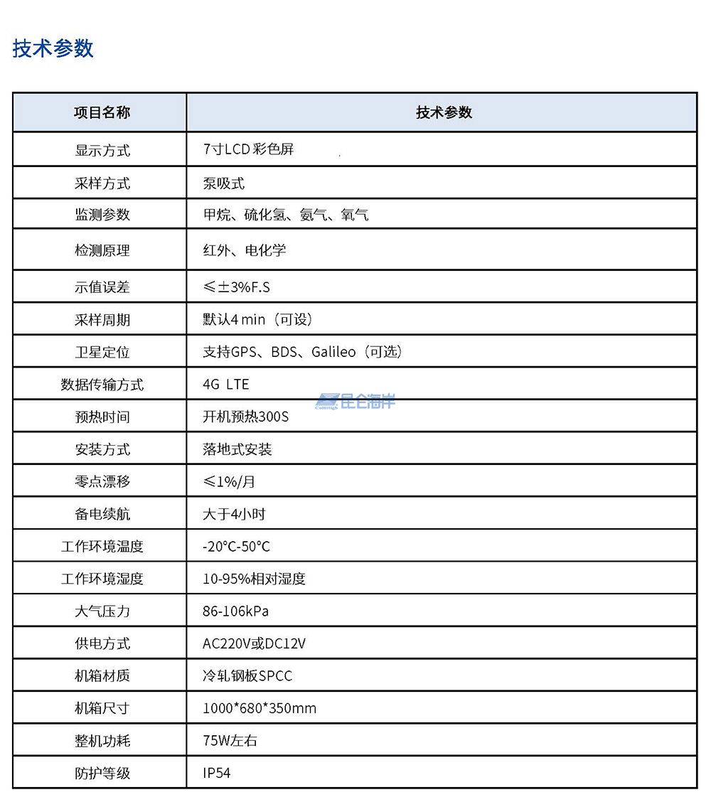 本产品主要对采样气体中的CH4、H2S、NH3、O2等介质进行监测分析,可设置各气体报警阈值。本系统内包含危险气体排气管路装置,当设备监测气体浓度值超过报警阈值时,排气装置启动将危险气体迅速排出,直至浓度降低至报警阈值以下,避免危险事件的发生。结合智能化管理云平台,将系统运行状态、监测数据、报警数据、卫星定位信息等相关参数,实时上传至云平台,进行实时管理监控。