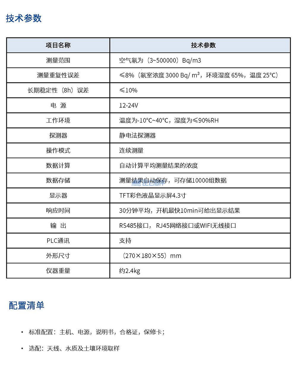 • 可测量环境空气中氡;