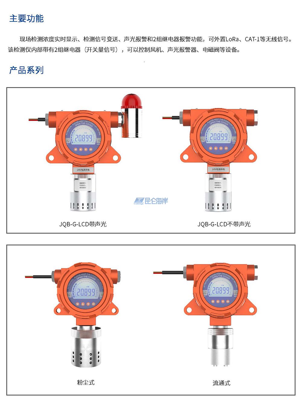 JQB-G-LCD型气体探测器是8868登陆入口打造的一款气体检测仪,采用原装进口传感器及全新32位低功耗处理器; 仪表盘显示界面,数值与进度条同时显示,美观大方;电路采用4层布线,对弱信号及抗干扰更强;独立的高精度进口16位AD芯片及特有信号处理算法,测量数据精度更高更稳定;4~20mA、RS485、200~1000HZ等多种输出信号可选择, 方便接入各种报警控制器、PLC、DCS等控制系统;防爆结构设计可应用在各种危险的工业场所。