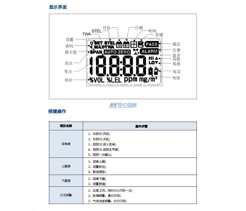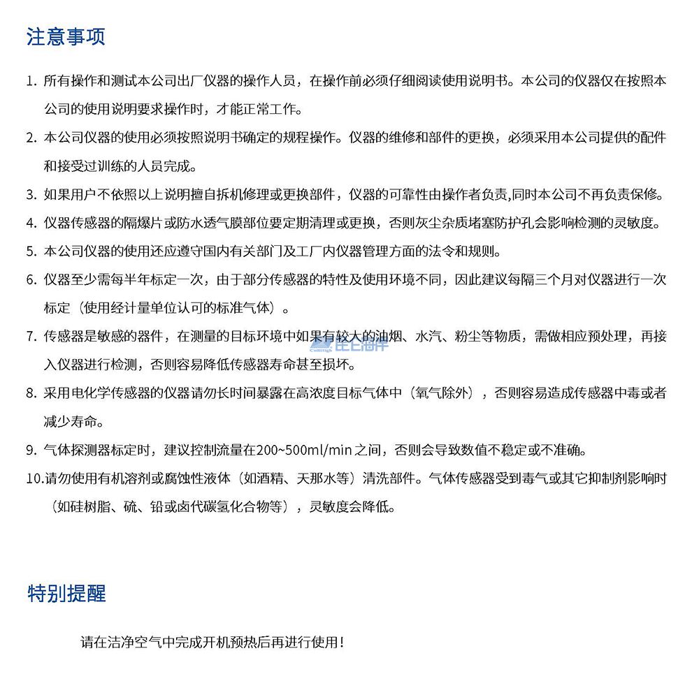 • 开机须在洁净空气中开机,零点自校准程序且可直接更换的插拔式传感器;