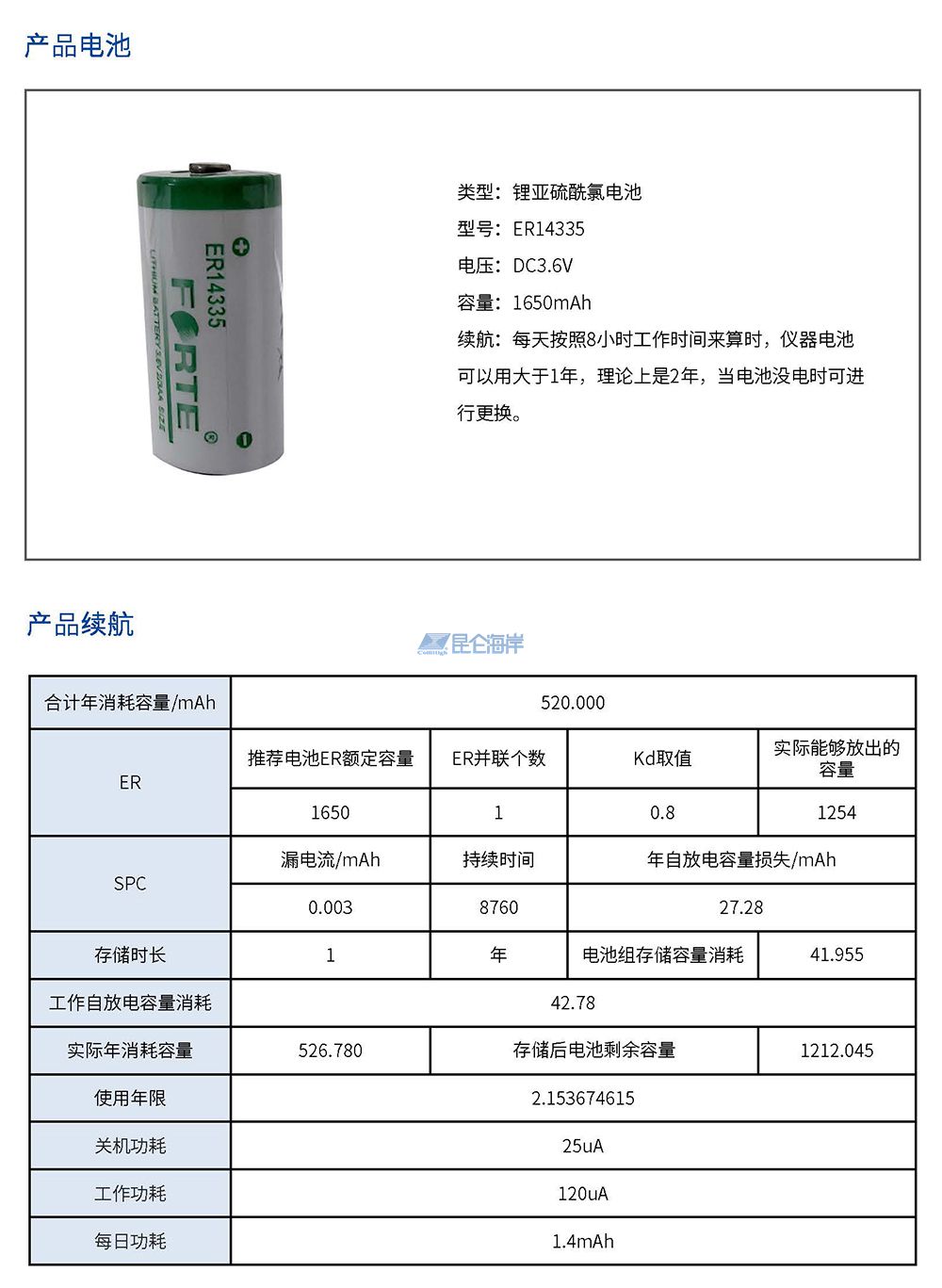 • 选用14335锂压电池,标准电压3.6V、标准容量1650mAh;