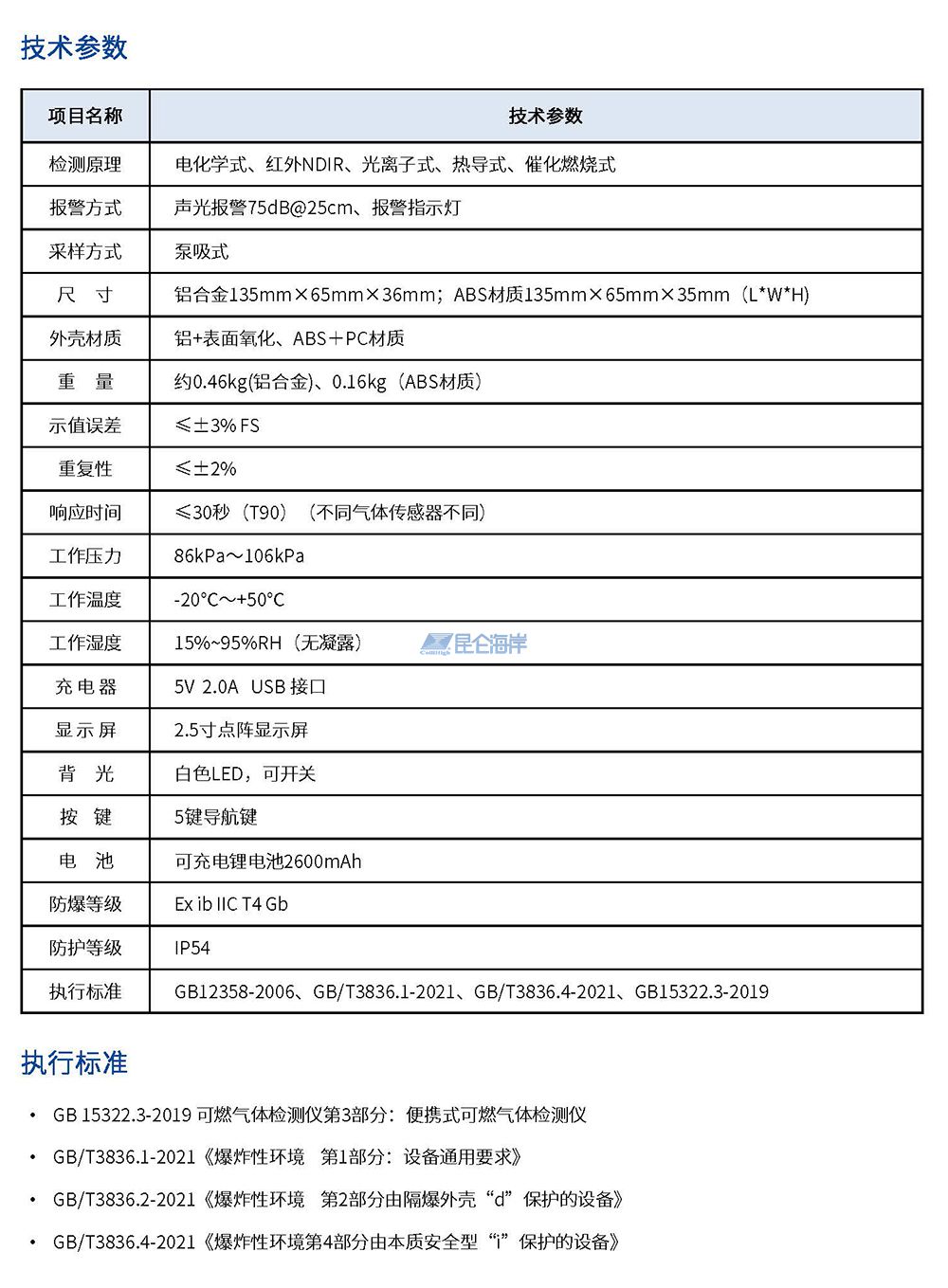 • 声光报警,检测到超标时及时报警提示,保护人身安全。