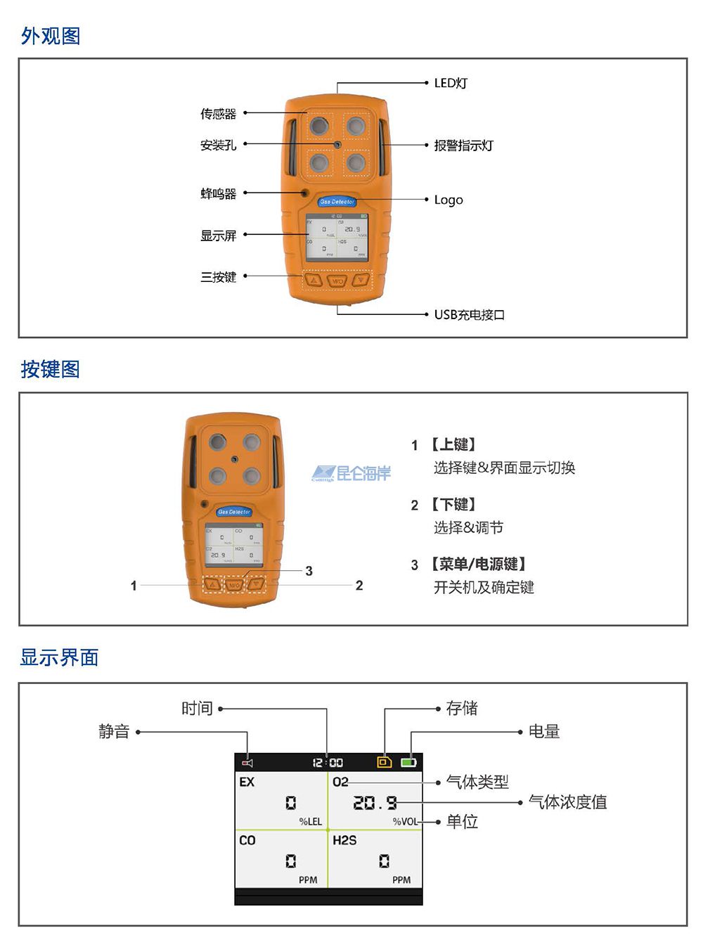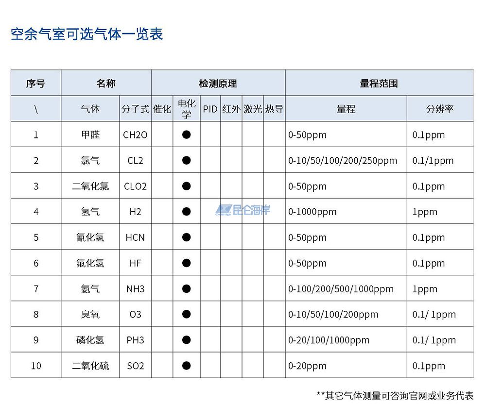 • 可同时检测可燃气、氧气及有毒气体;每台探测器最多可安装一个可燃气传感器、一个氧气传感器、两个毒气传感器(CO,H2S,SO2,NH3,NO2,PH3,CL2等);用户可根据被测气体选配传感器,组成二合一、三合一、四合一气体检测仪;