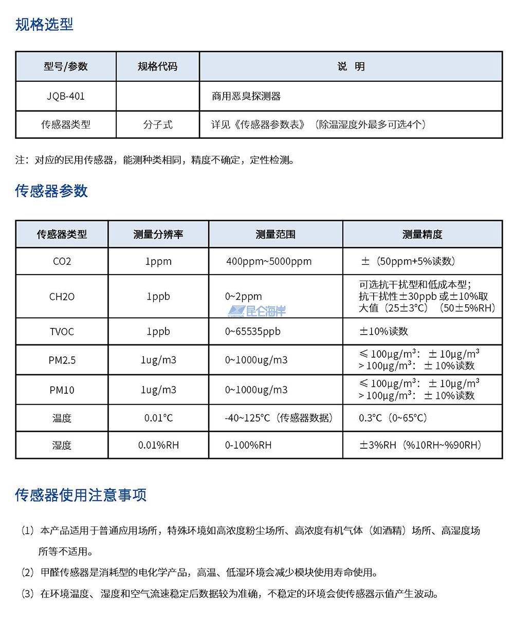 JQB-401型商用恶臭探测器可用于检测空气环境中CO2(二氧化碳)、CH2O(甲醛)、TVOC(可挥发性气体)、颗粒物PM2.5、PM10、温度、湿度等参数,产品集多种测量要素于一体,功能非常强大,基本涵盖了反映气体系列的各个指标,搭配物联网关即可通过有线RS485上报测量数据信息到平台进行记录和分析。