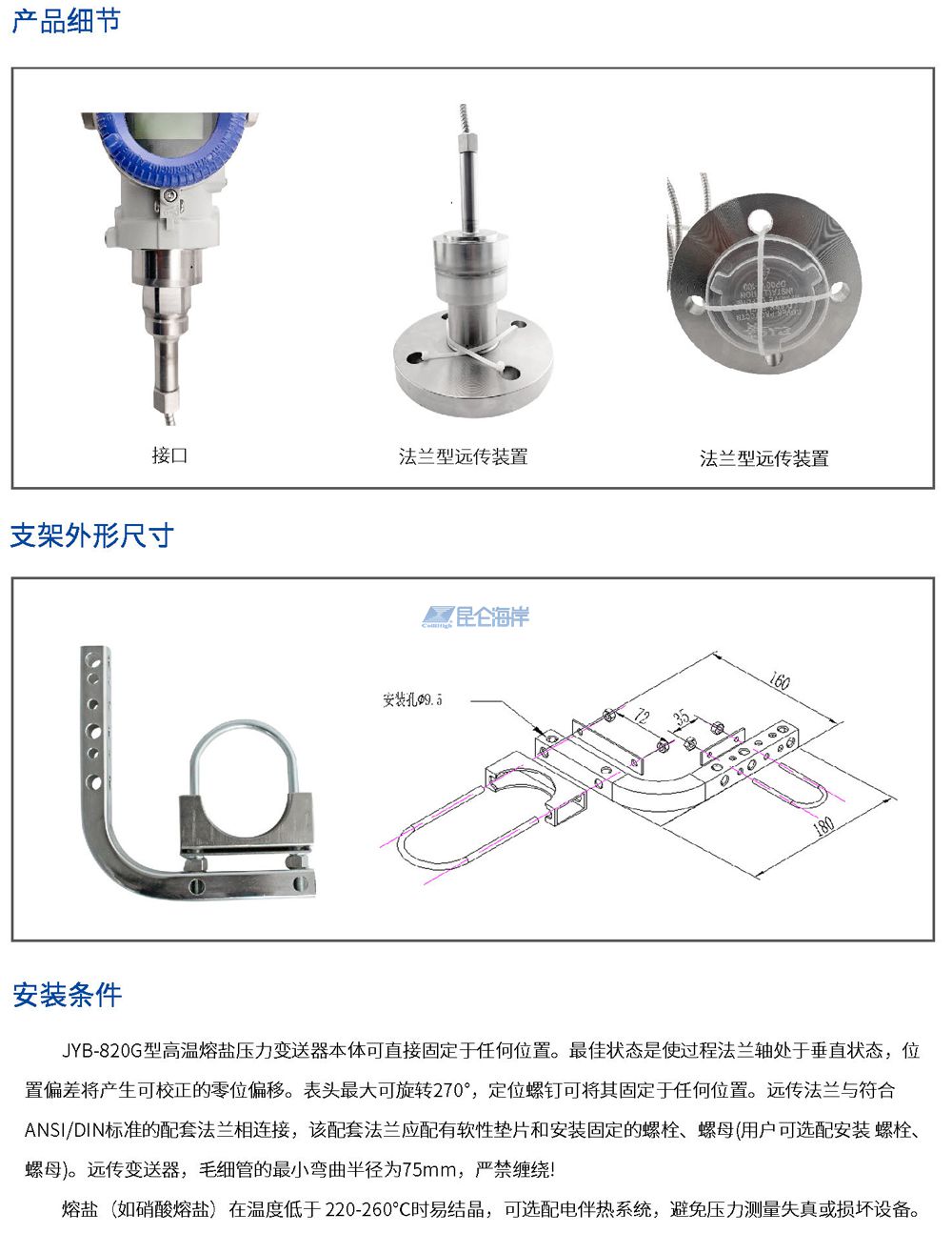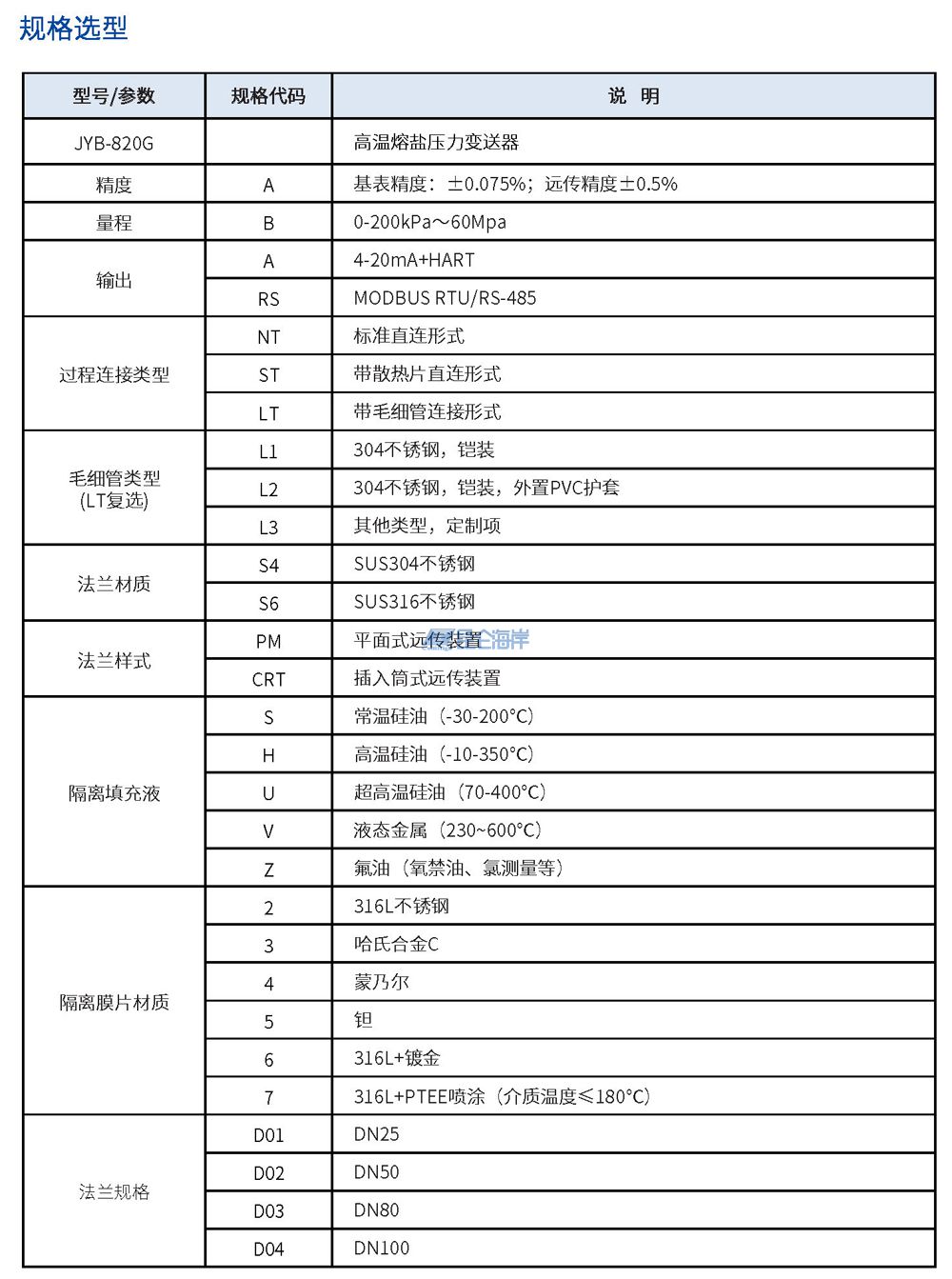 JYB-820G型高温熔盐压力变送器是专门针对高温熔盐介质(如硝酸熔盐、氟化盐等,工作温度通常在200-600℃,甚至更高)设计