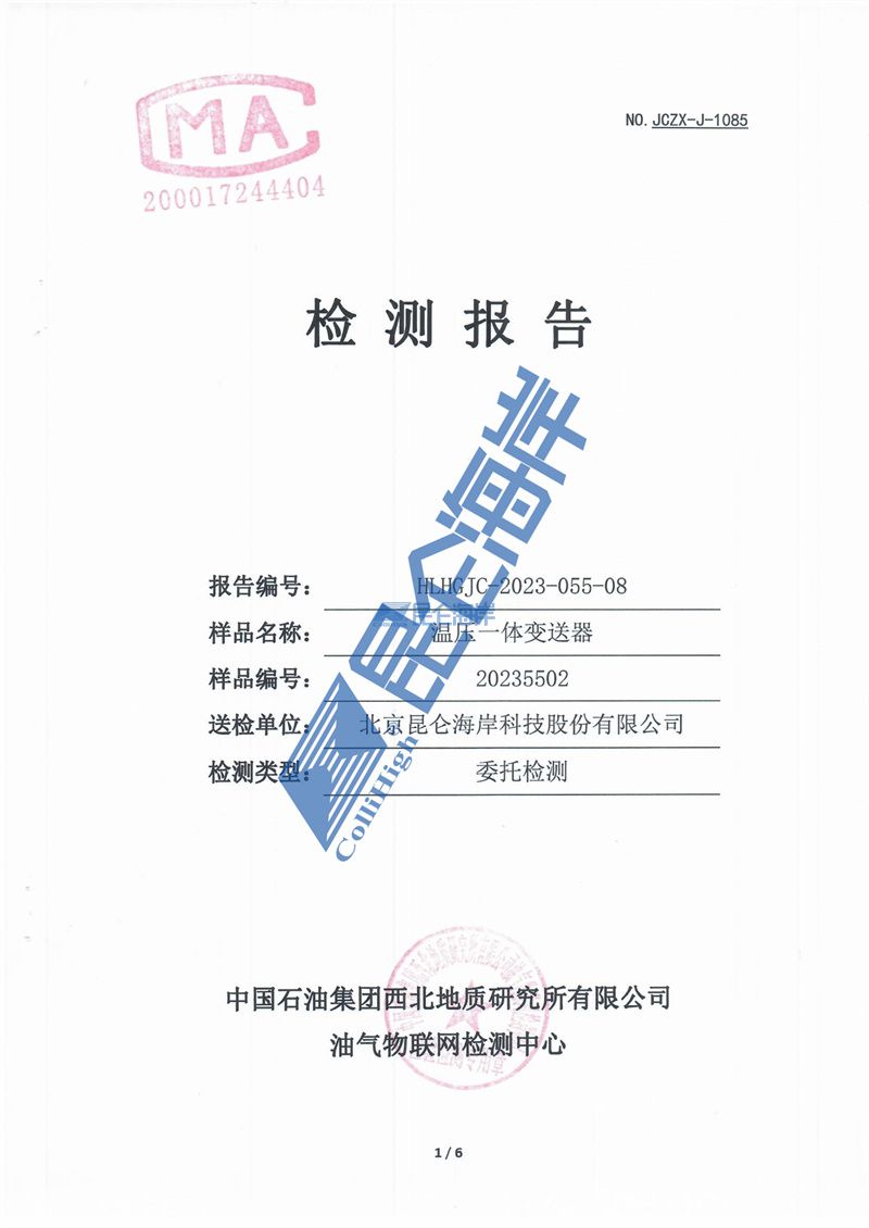 西北油田检测报告温压一体变送器2023