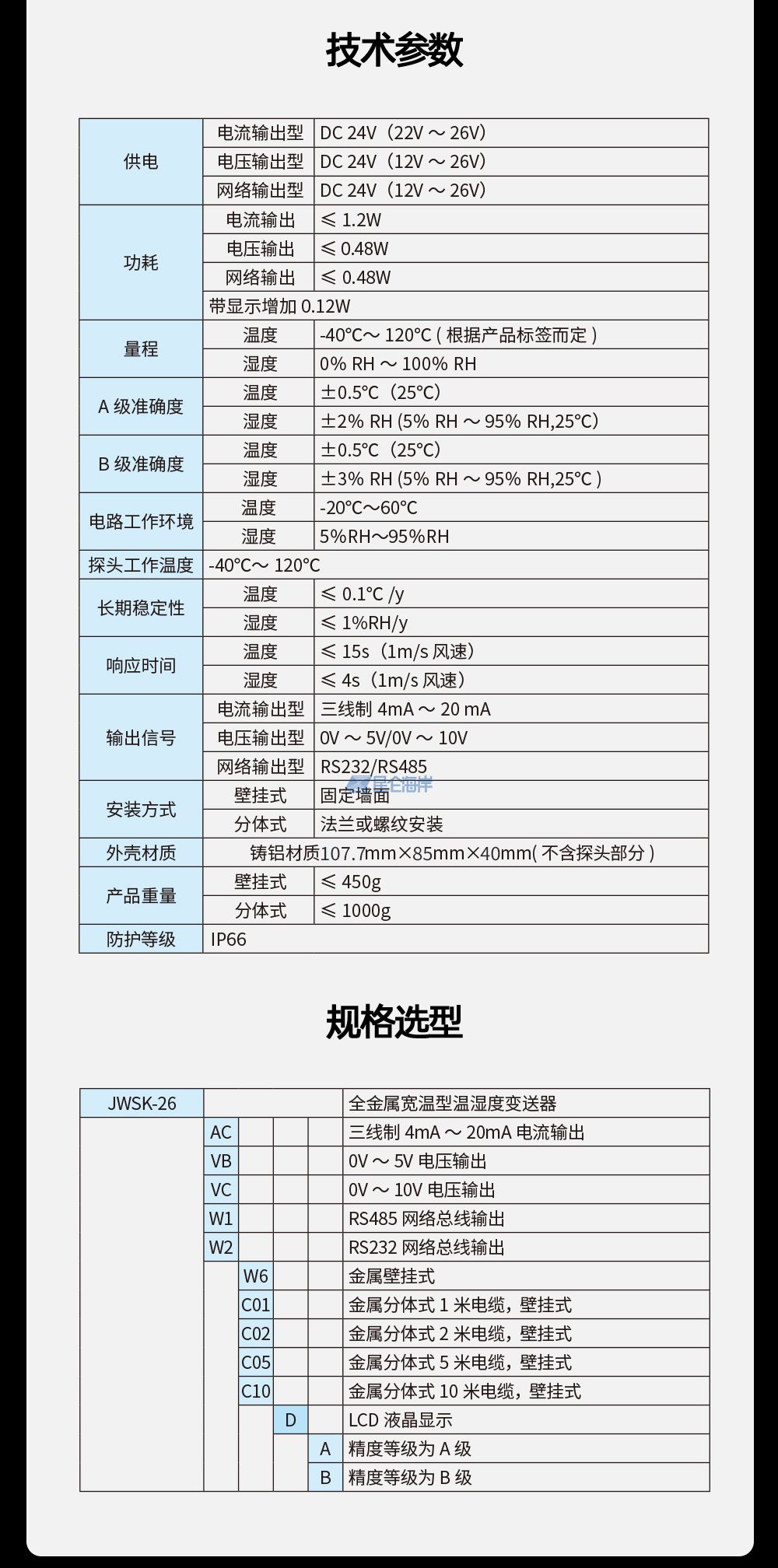 JWSK - 26 series professional wide temperature type temperature and humidity transmitter V1.0