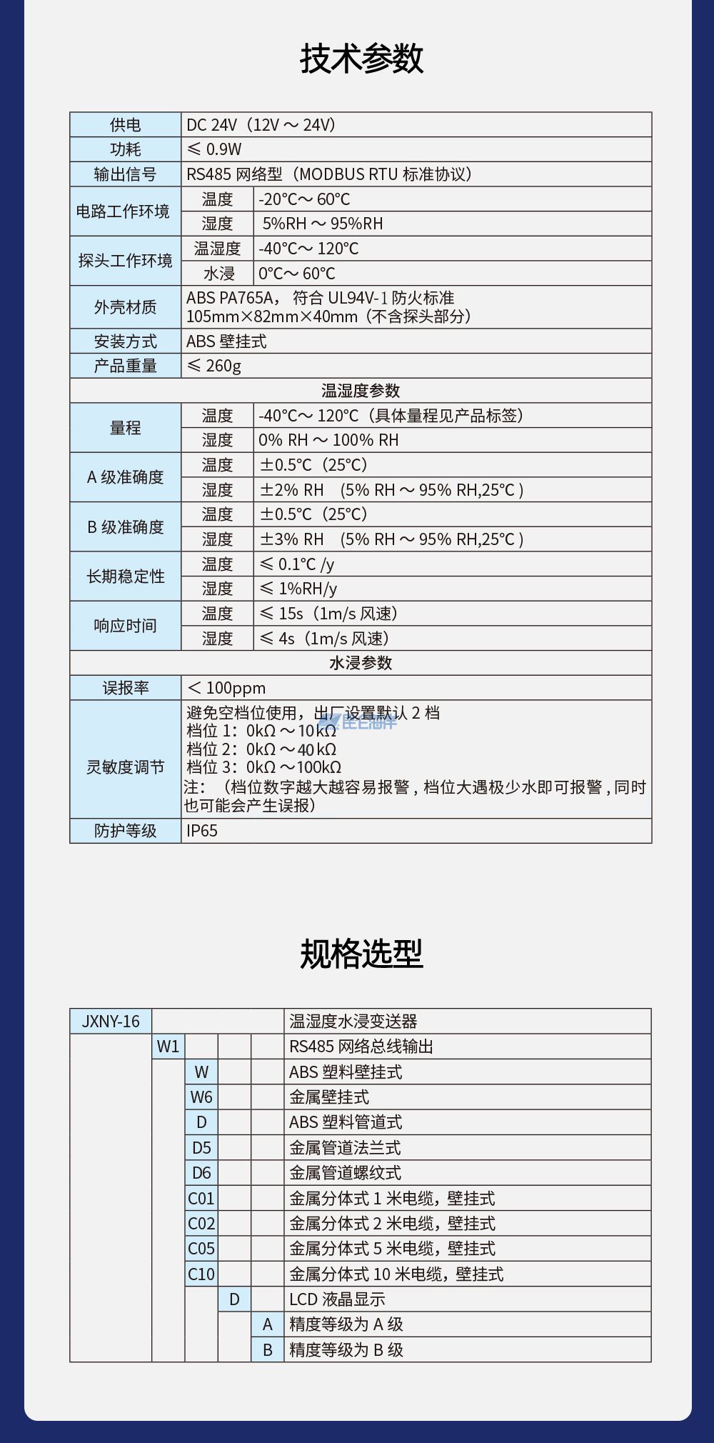 JXNY-16W1系列温湿度水浸变送器通讯协议 V1.0