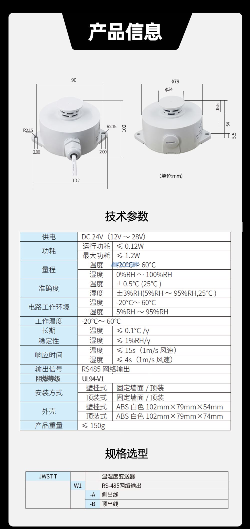 产品型号:JWST-T