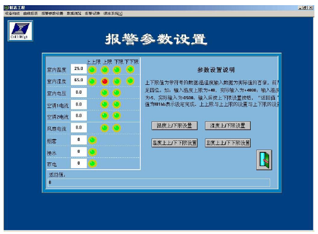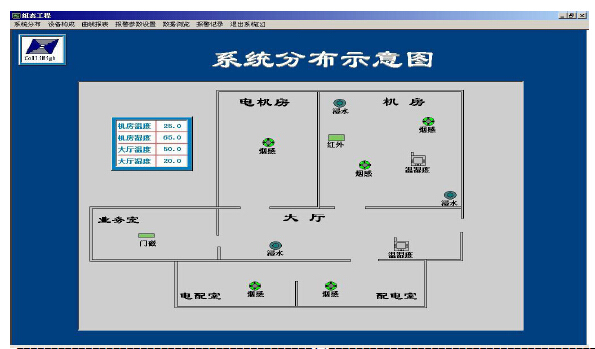 通过现场数据与监控中心服务器数据交换,在数据中心显示所有库房的温度数值,并且显示超温报警站名、报警类型和报警发生位置,并且具有对数据的列表统计,曲线分析,报警记录查询,控制报警现场设备等功能。