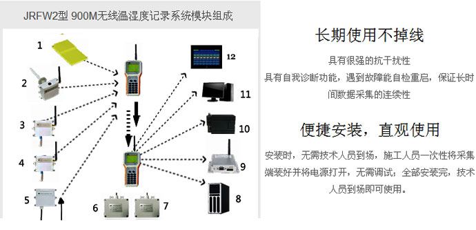 1、采集端目前由无线温度采集卡、无线温度采集端、无线温湿度采集端、无线管道式