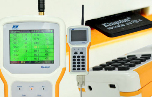 记录接收端和中继器都是手持式设计,跟万用表很像,比万用表多出一个天线。配有USB接口,用线与笔记本电脑连接可以随身携带走着去每个仓库接收、检查、存储数据。移动式记录接收端的避免触碰天线影响其使用性,可选内置天线的型号。