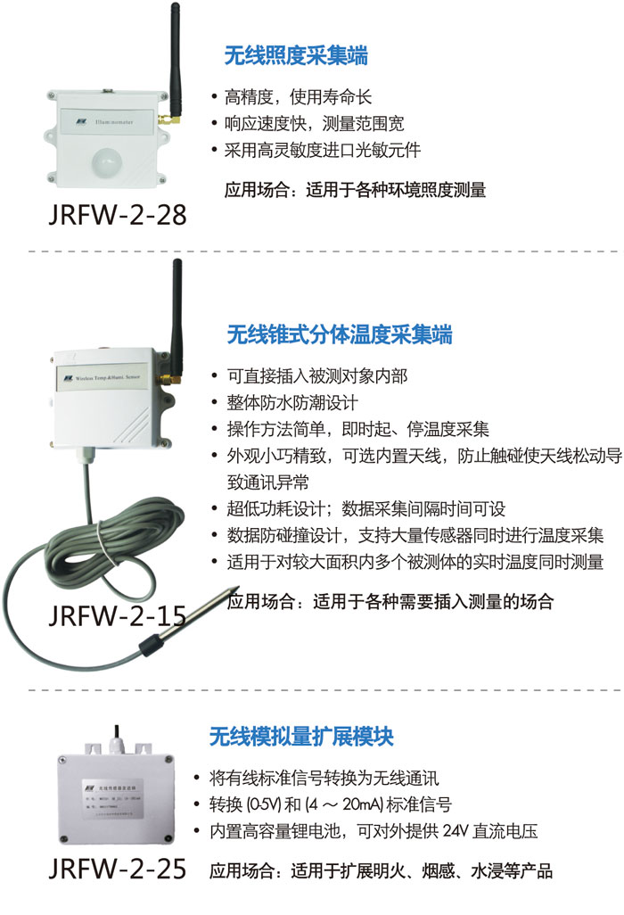 6、内置900M 无线接收模块,智能自组网,传输距离远,一只网关最多可下挂247 只900M 无线传感器;