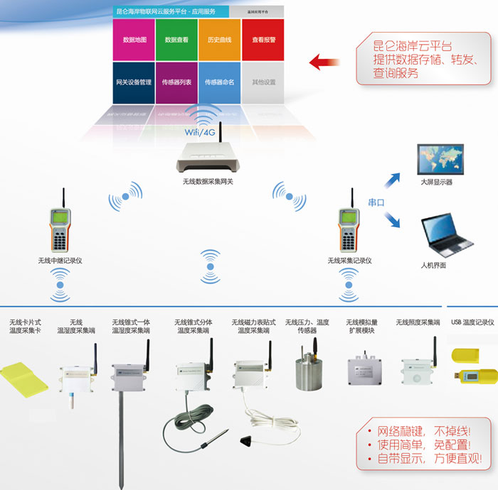 900M无线传感器、记录仪、采集网关、数据管理平台