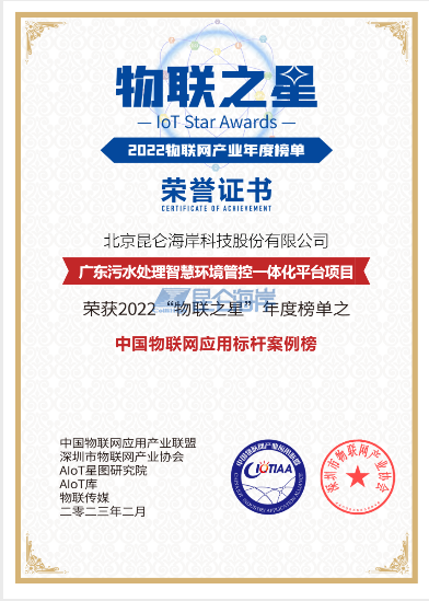 8868登陆入口凭借广东污水处理智慧环境管控一体化平台项目荣登年度榜单之中国物联网应用标杆案例榜。