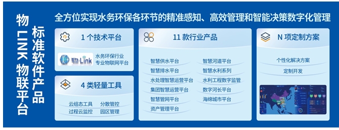 物LINK物联网平台为标准的软件产品,能够全方位实现水务环保各环节的精准感知、高效管理和智能决策数字化管理。这款软件产品包含了1个技术平台,4类轻量工具,覆盖了11款行业产品,同时也可以根据客户需求定制开发个性化解决方案。硬件产品展示区: