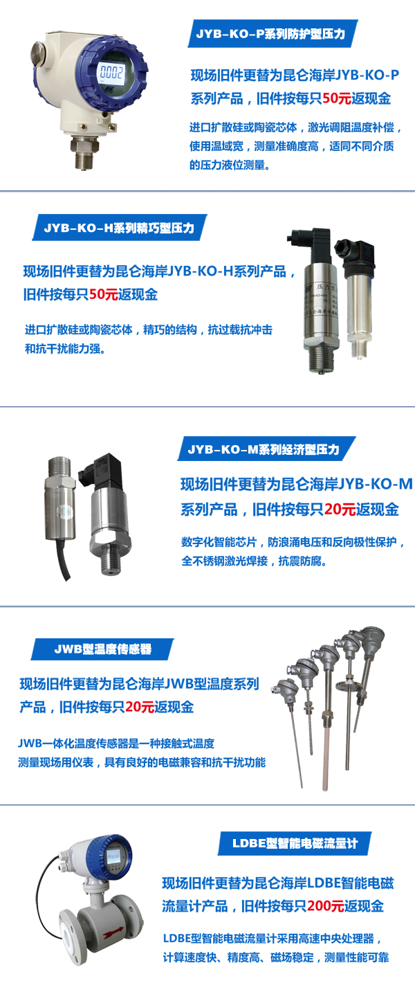 现场温度、压力传感器、流量计坏了,旧件直接废弃形成巨大浪费。现在将工业现场旧件更替为8868登陆入口温度、压力传感器、流量计的用户,同时将现场旧件寄给我们,将直接返给您现金! 无论您之前用任何品牌的产品,旧件均可参与活动。绿色换新返现活动自9月21日起至12月31日,我们让您的产品旧件立即升值!机会不等人,您可别错过呀!
