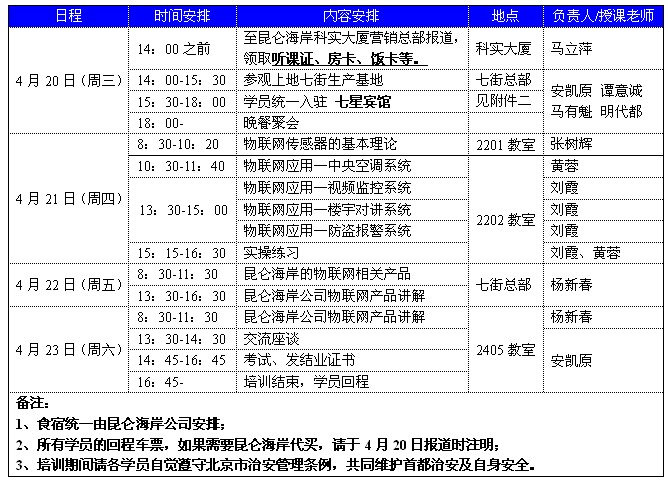 4、培训日程安排如下: