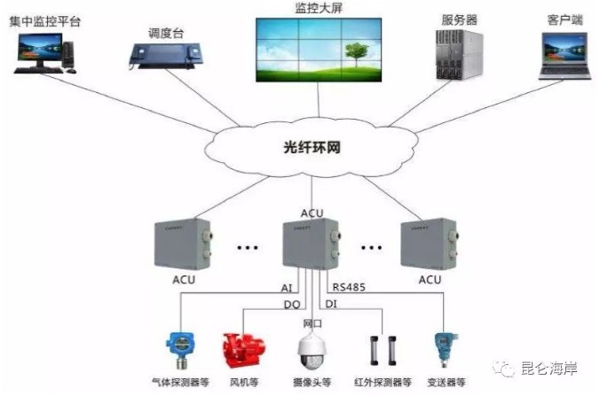 现场分为燃气舱防爆区跟非防爆区,每隔一段距离需要检测空气温湿度,氧气,甲烷。管廊里集水井需要检测井内水位高度。