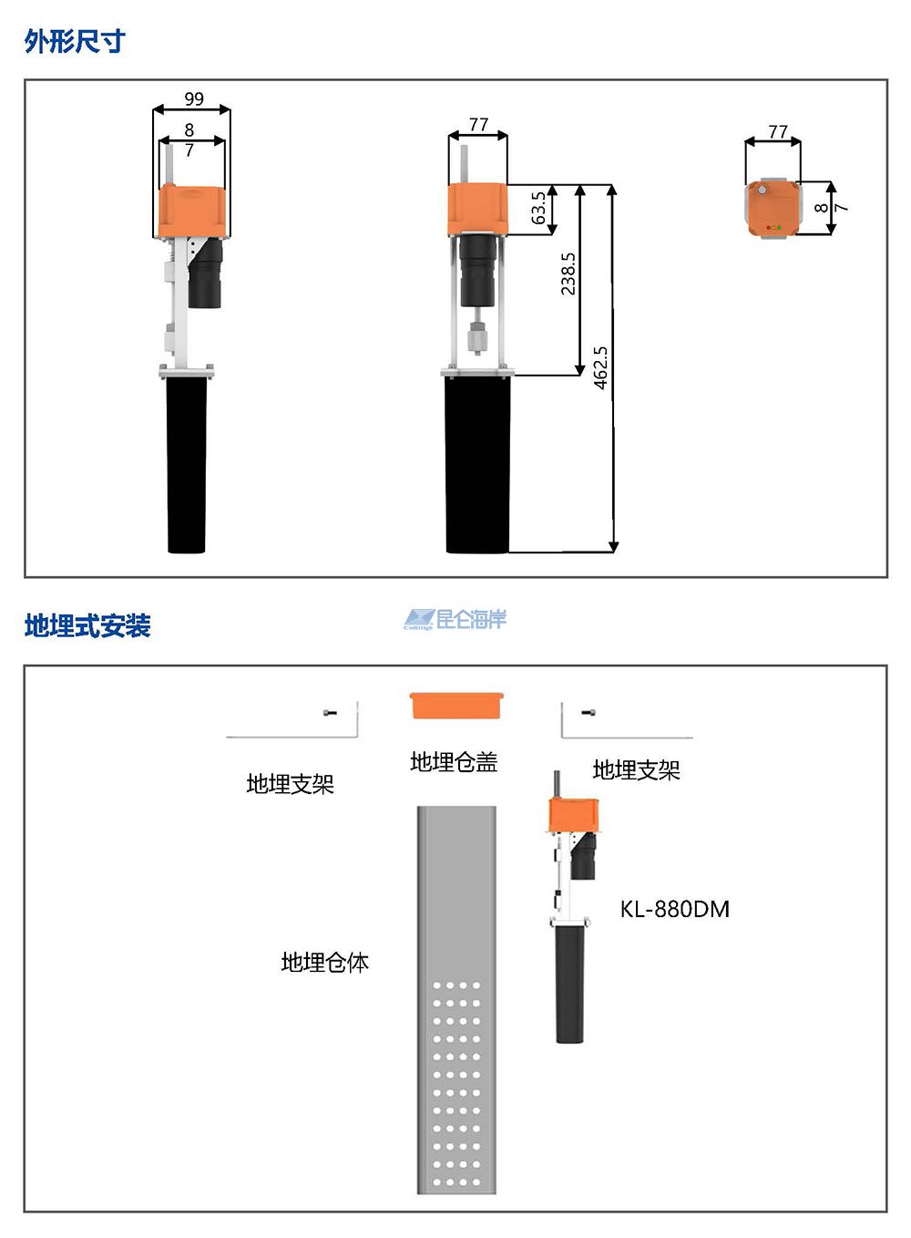 KL-880DM型地埋型无线智能监测终端,该产品可使用激光原理与催化燃烧原理,能够精准监测甲烷气体的泄露,另外结合独有的温湿度补偿算法和相关专利技术,尽可能减小环境温湿度对检测结果的影响。