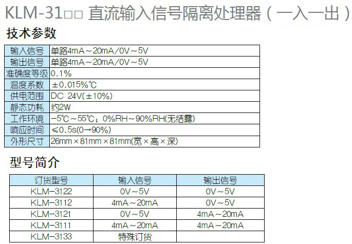 I 小型插装式构造的数字式信号隔离处理器 I “输入-输出-电源”互相隔离 I 带电源指示灯 I 带输出信号零点和满度调整 I 可高密度安装