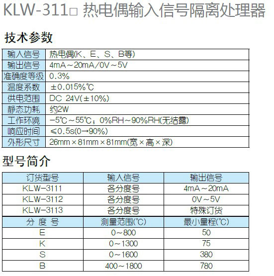 产品型号:KLW-311□