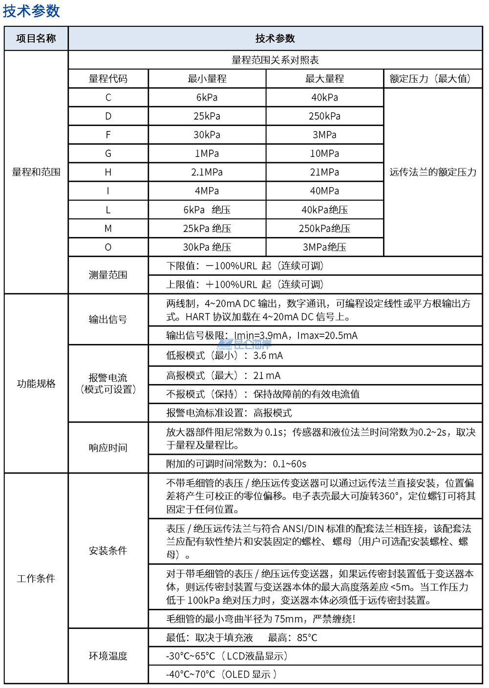 • 量程可设置,零点可迁移,显示单位可自动换算;