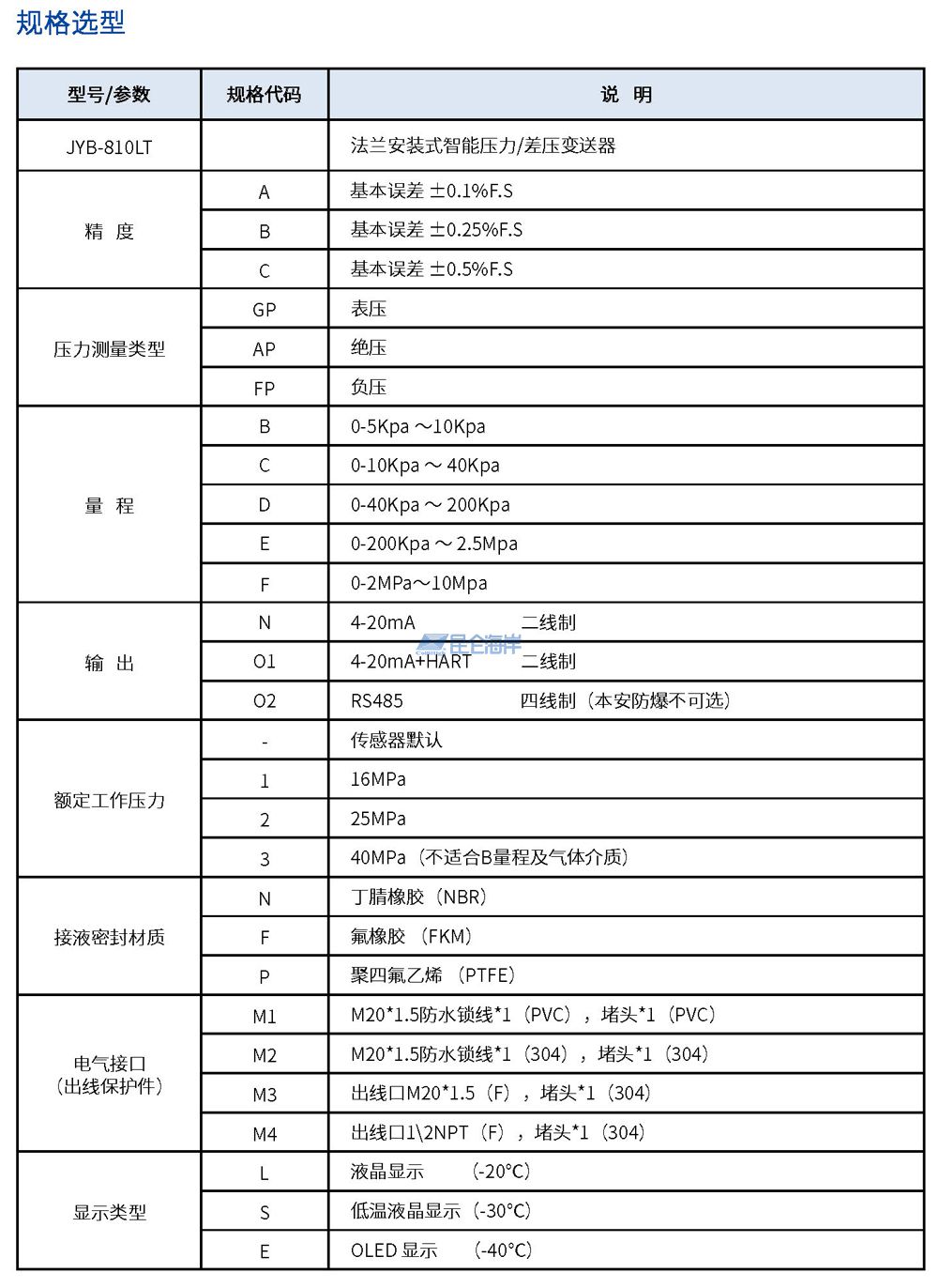 JYB-810LT型法兰安装式智能压力差压变送器 V3.02