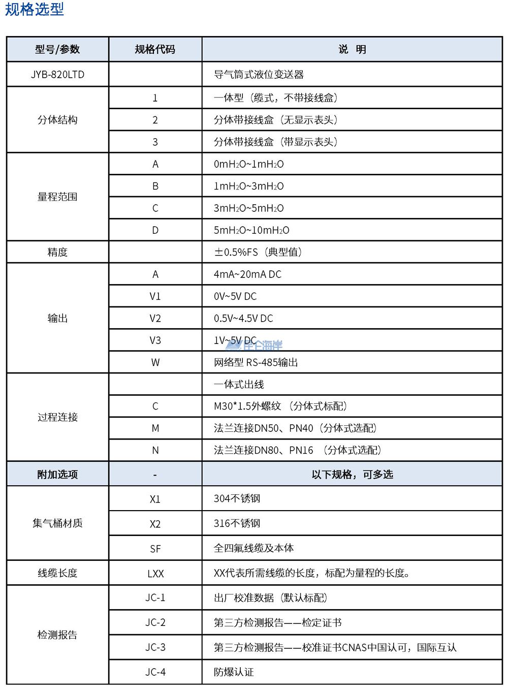 JYB-820LTD型导气筒式液位变送器,是一种专为含有气泡、易挥发或溶解气体的液体设计的液位测量设备,其核心结构包含 “集气桶”