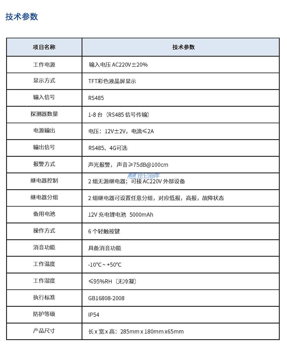 报警控制主机由主控板,电源板,TFT显示屏,喇叭,开关电源等组成,备用充电电池。该产品还内置了2组输出继电器,用于驱动控制风机、电磁阀等设备,适应不同的现场情况;具备4G无线通信,数据上传云平台。具有RS485输出功能,方便与第三方传输数据。其设计遵循国家标准,具有响应速度快,抗干扰能力强,可靠性高,易于维护等优点。